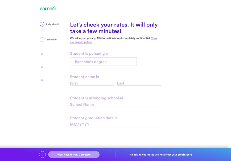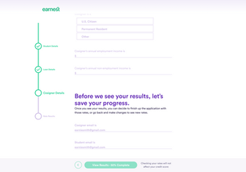 While we front-load all the eligibility and rate determining questions, requiring higher engagement from users before seeing rates, customers will chose to continue to the application with Earnest (a few remaining questions) because we provided more transparency and established trust.